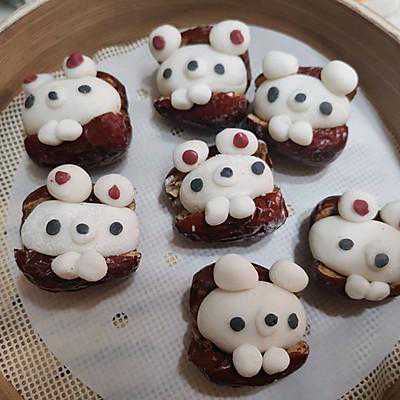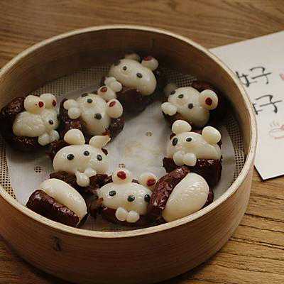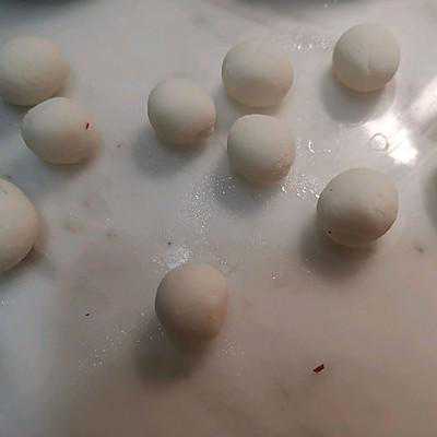 13、红色小圆也按上。不一样的开口笑糯米枣已完成。