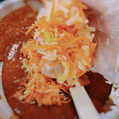 3、1,胡萝卜、苹果、梨擦丝2,柠檬切片3,锅中加水放糯米粉,熬到变成白色加入辣椒粉、鱼露、虾酱…搅拌均匀后再拌入胡萝卜柠檬等