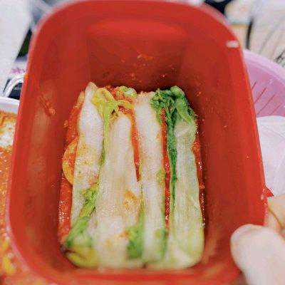 5、一层酱汁一层白菜(如果没有掰开,直接在叶子中间擦)