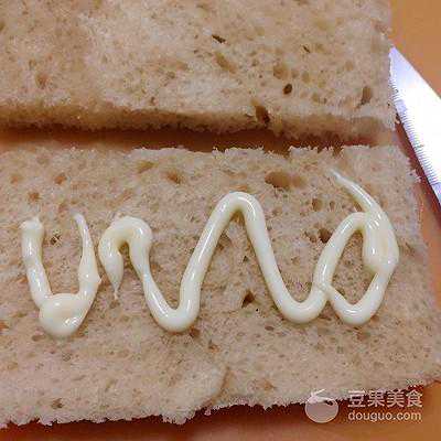 6、哈哈,把你喜欢吃的都夹进去吧~最后盖上另一片吐司片,简单美味的三明治就完成了。