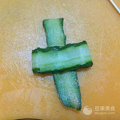 9、用两个稍微细一点的黄瓜片做蝴蝶结。