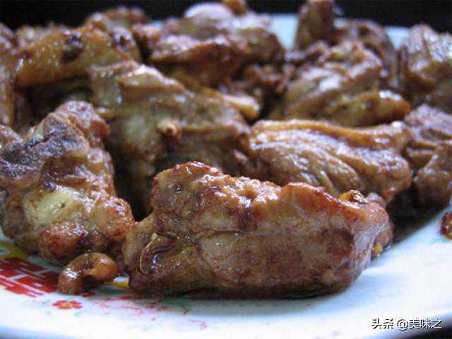5、保持大火翻炒煎制鸭肉表面金黄色。