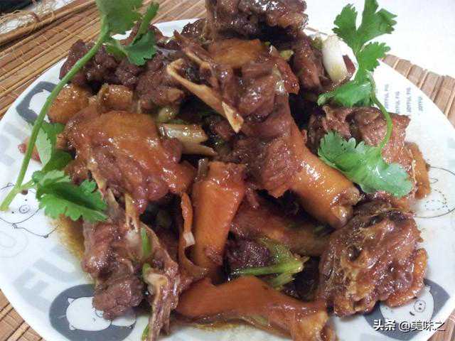 鸭半只、姜、胡椒、葱、香菜、食用油、盐、酱油、冰糖、料酒。