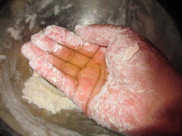 在手上涂上油,把面粉揉成团,醒上半个小时。