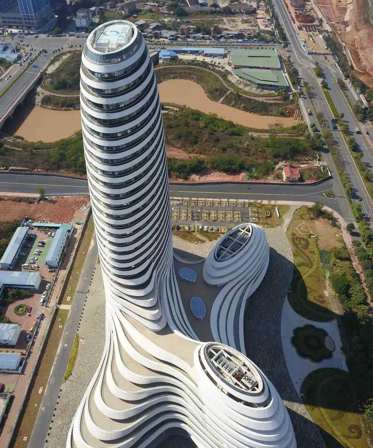 另一个引人侧目的是位于柳州市区内显眼位置处的“尿壶楼”。这座高耸入云、造型别致独特的景观建筑备受争议,其外观设计极具创意但也因其形象让人啼笑皆非。但无论如何,它确实成为了该城市一道别具风格、引人注目的风景线。