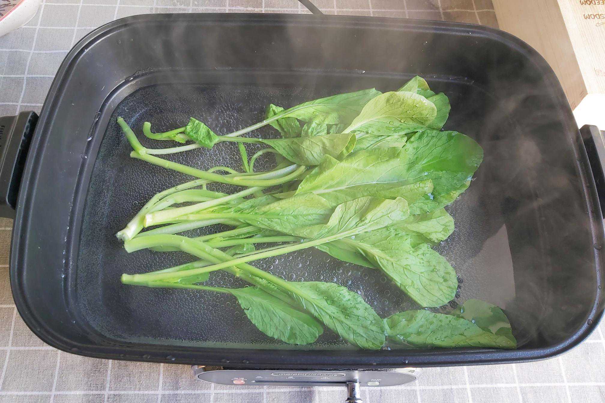 4.准备点青菜(绿叶菜均匀,看自己喜好),焯水后过下冷水备用。
