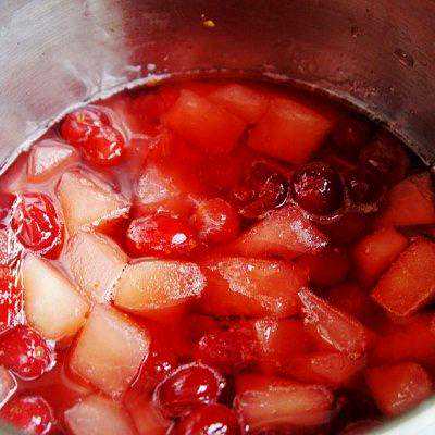 6、煮至苹果软软的蔓越莓通透就好了,看这颜色多漂亮。
