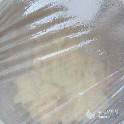 5、用保鲜膜覆盖面盆,将面团静置冷却。