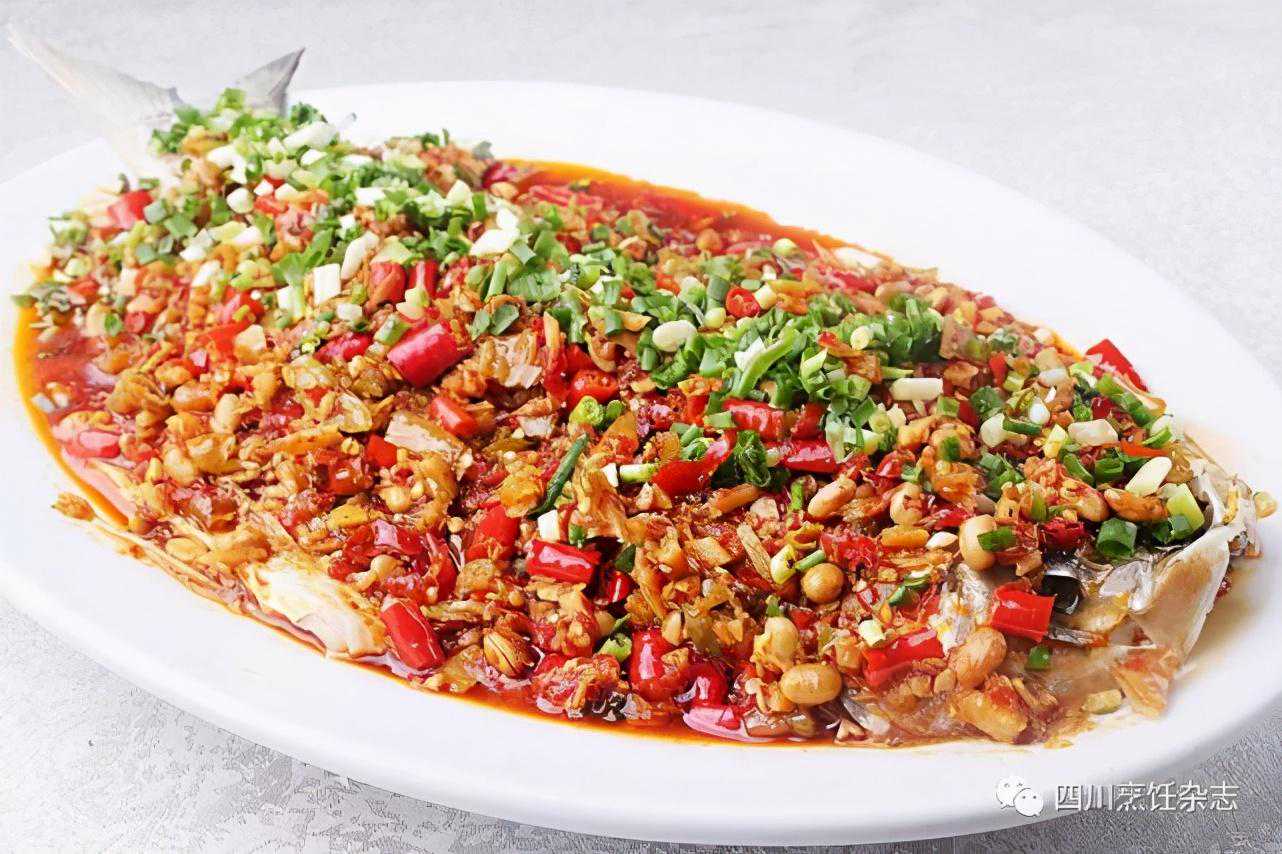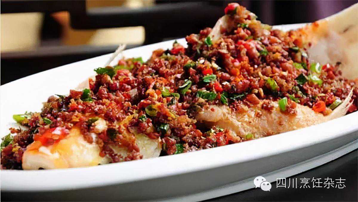 这道菜需要用到永川豆豉,永川豆豉在川菜调味品中占有重要的地位,不管是炒回锅肉、烧麻婆豆腐,还是炒火锅底料,都离不开它。此豆豉色泽黝黑,而腌辣椒色泽也深,这两者用量都大,故清蒸鲫鱼成菜的整体颜色较差。永川豆豉和腌辣椒组合成的豉椒味,与平常见到由黄豆豉和鲜椒组合成的豉椒味有很大不同。