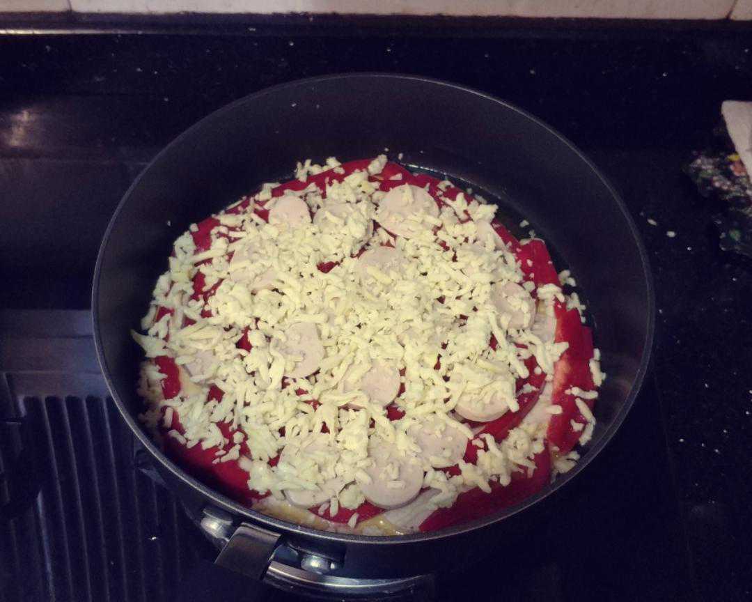 【菜名】:自制香肠芝士鸡蛋伪披萨饼