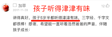 浩然爸爸充满磁性和温柔的声音可以更好地营造朗诵和倾听的氛围。