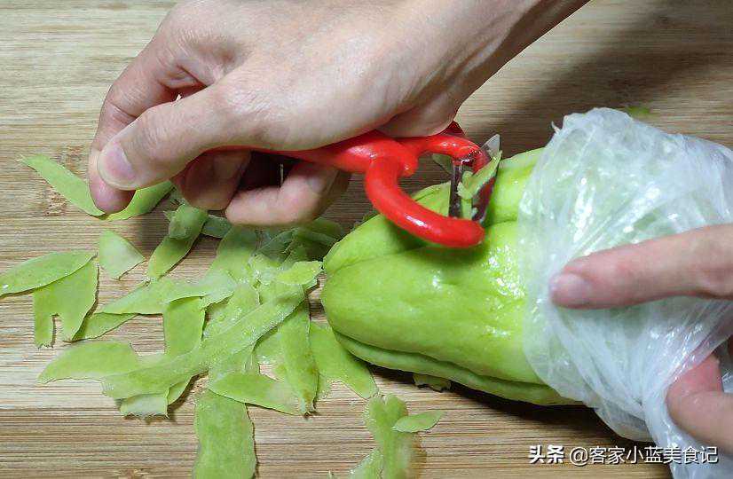1,佛手瓜削皮后会有很多汁液,还会比较滑手,所以最好戴手套再削皮,或利用流动水冲洗着来削皮。