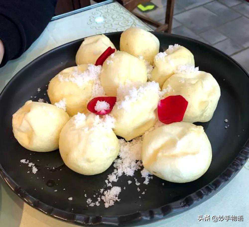 雪衣豆沙属于吉菜(东北菜),已有百年历史,颇受游客欢迎。主要原料是红豆、鸡蛋、白糖等。形状园团,色泽洁白、吃前撒上白糖,故得此称。此菜香甜可口、独具风味。雪衣豆沙主料选用豆沙,辅以蛋泡糊,采用松炸的烹调方法制成。成品喧软涨满,形圆色白似朵朵棉桃。在炸制中因其底部受热膨胀,雪白的豆沙球在油中自动翻转不停,极富情趣。