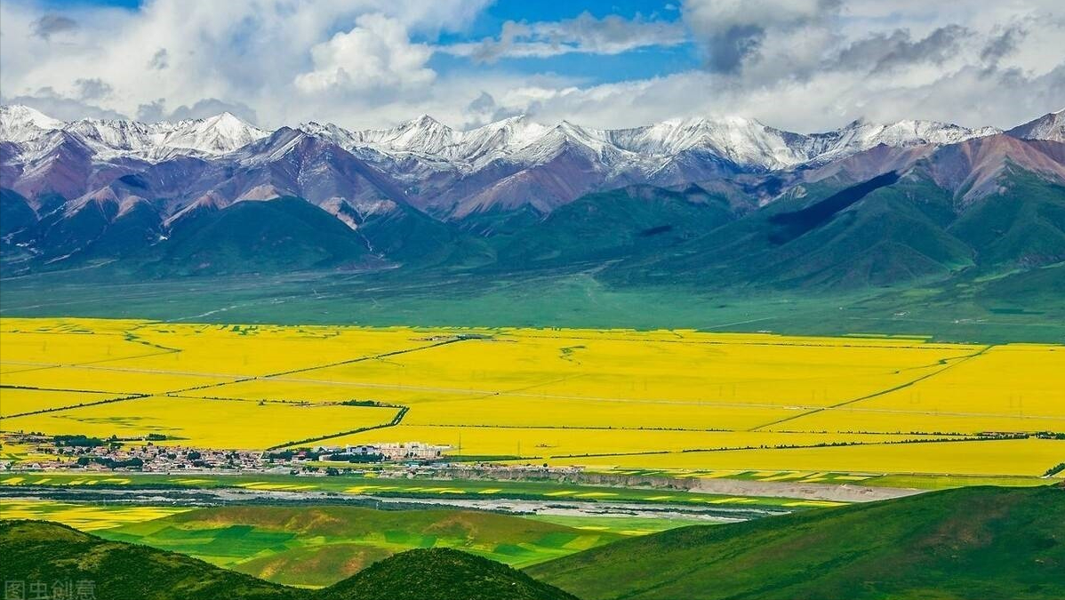 油菜花并不稀奇,哪里都有,但门源的油菜花气势壮观,北依祁连山,西起永安城,东到玉隆滩,南邻大坂山,绵延上百公里,宛如金黄的大海。浓艳的黄花,紧沿着浩门河畔,横越门源盆地足有百公里,在高原深蓝的天空下,与远山近水,村落人家相辉映,近看远观皆为美景。