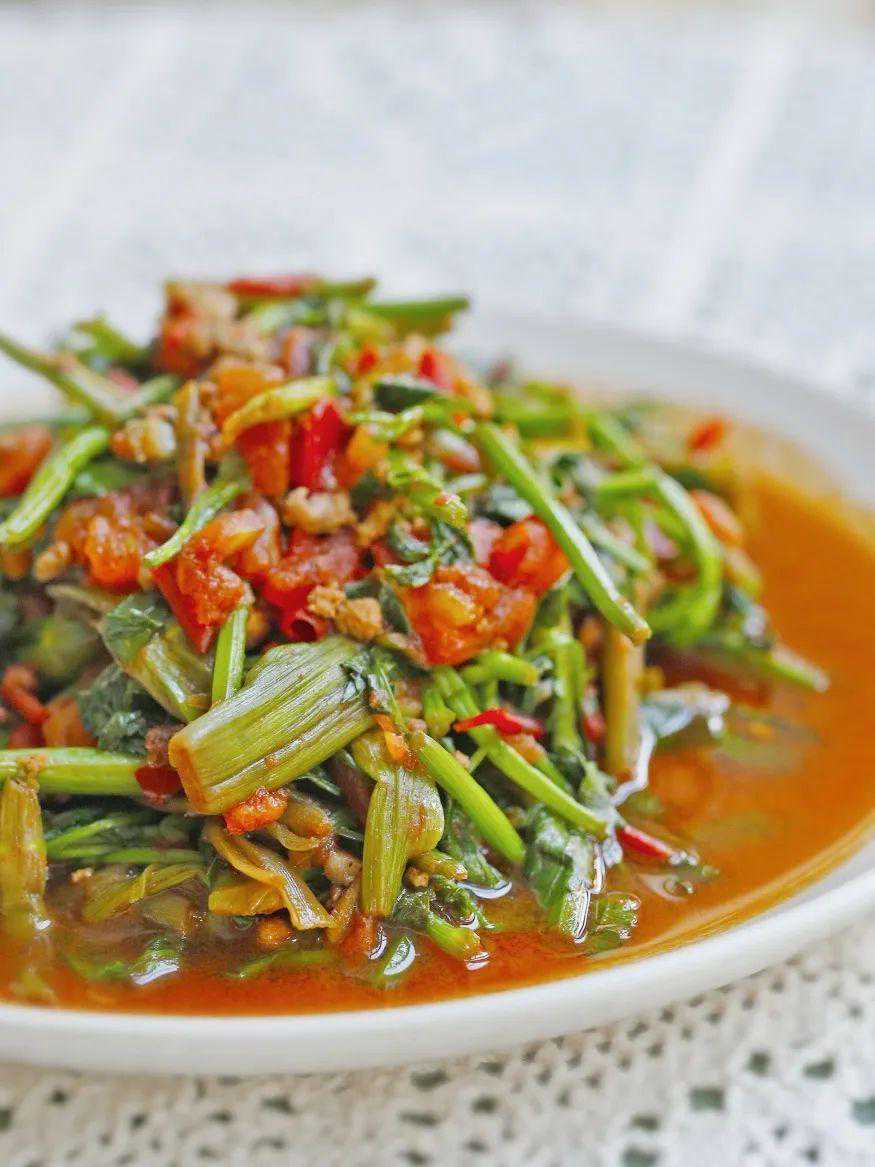滇菜中以水芹菜、肉末和番茄同炒,水芹气味独特