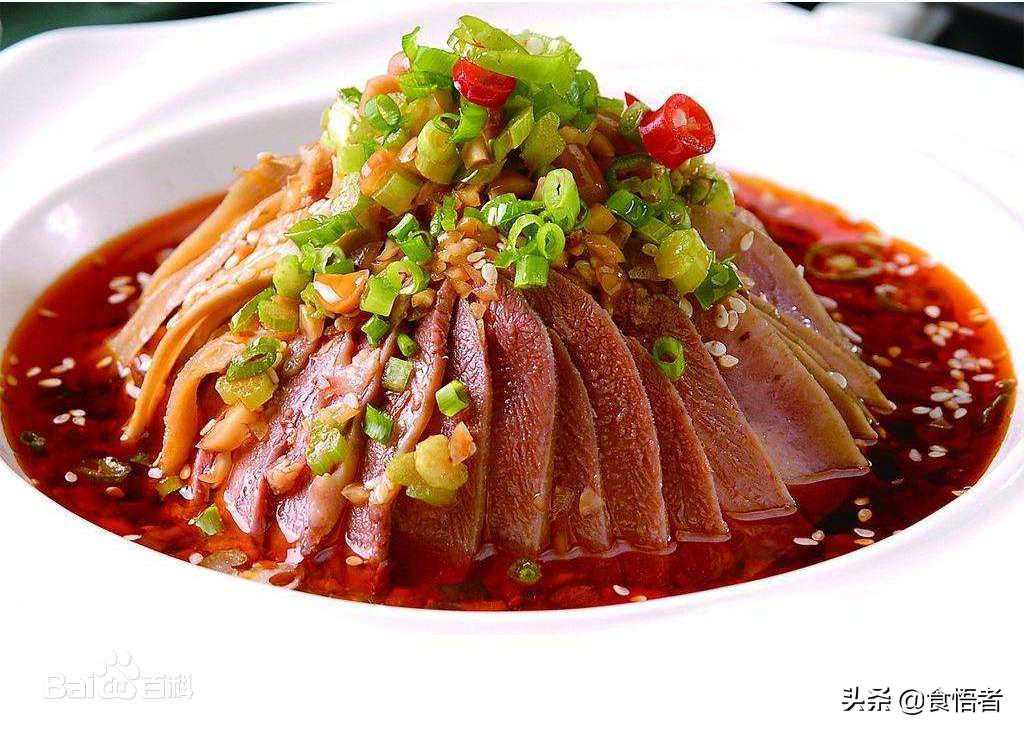 夫妻肺片应该是川菜中麻辣味型凉拌菜的经典之作,把牛肉和牛杂用开水汆一下,然后捞出。锅内放水和卤汤,放入汆好的原料,再把花椒、八角、桂皮、葱段、姜片做成的调味料包放在汤锅内,加料酒,汤煮开以后撒掉浮沫。用小火煮约4小时,酥烂后捞出。把煮熟的各种原料切成薄片放入菜盆中,依次放入卤汤、盐、香油、酱油、辣椒油、花椒面搅拌均匀;装盘,撒上油酥花生米末、熟白芝麻、香葱末即可。成菜色泽美观、质嫩化渣、麻辣浓香。演变菜式:干拌牛肚、麻辣牛舌、干拌猪手等。