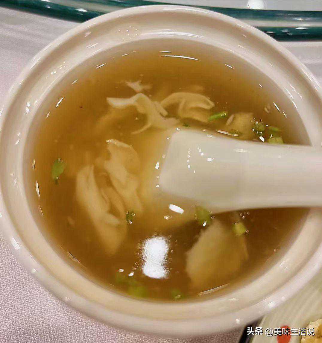 又是一道不错的招牌菜,成菜后,蛋色乳白、薄如纸片,口味偏胡辣,酸咸皆备,芡汁儿适中非常顺滑。