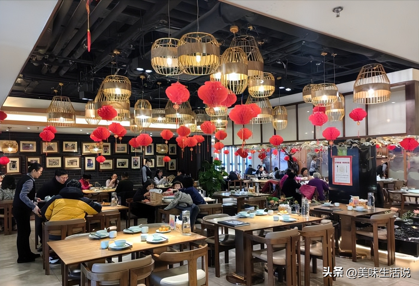 丰泽园饭庄(王府井店)就餐环境也是相当大气,到处都透着丰瑞祥泽之气,宽敞明亮的大厅,鸟笼式的吊灯,火红的灯笼挂饰,古朴典雅的桌椅,果然是将近百年老字号独有的精气神!坐在这里就餐,感觉一下子萎靡的状态都好起来了。