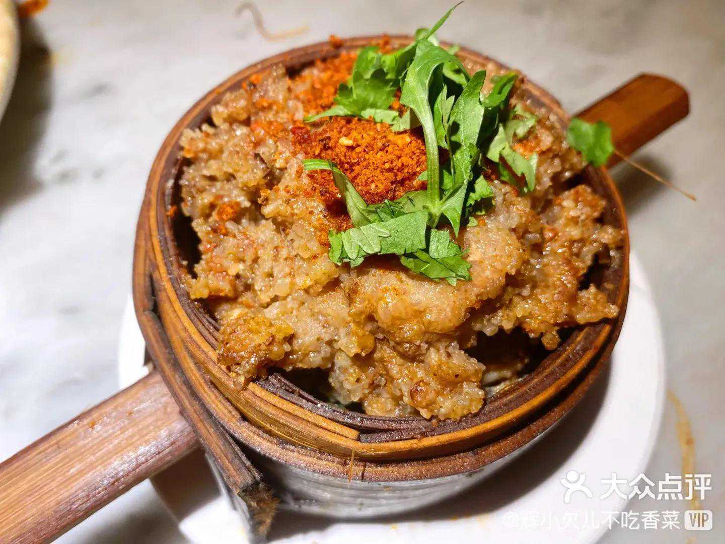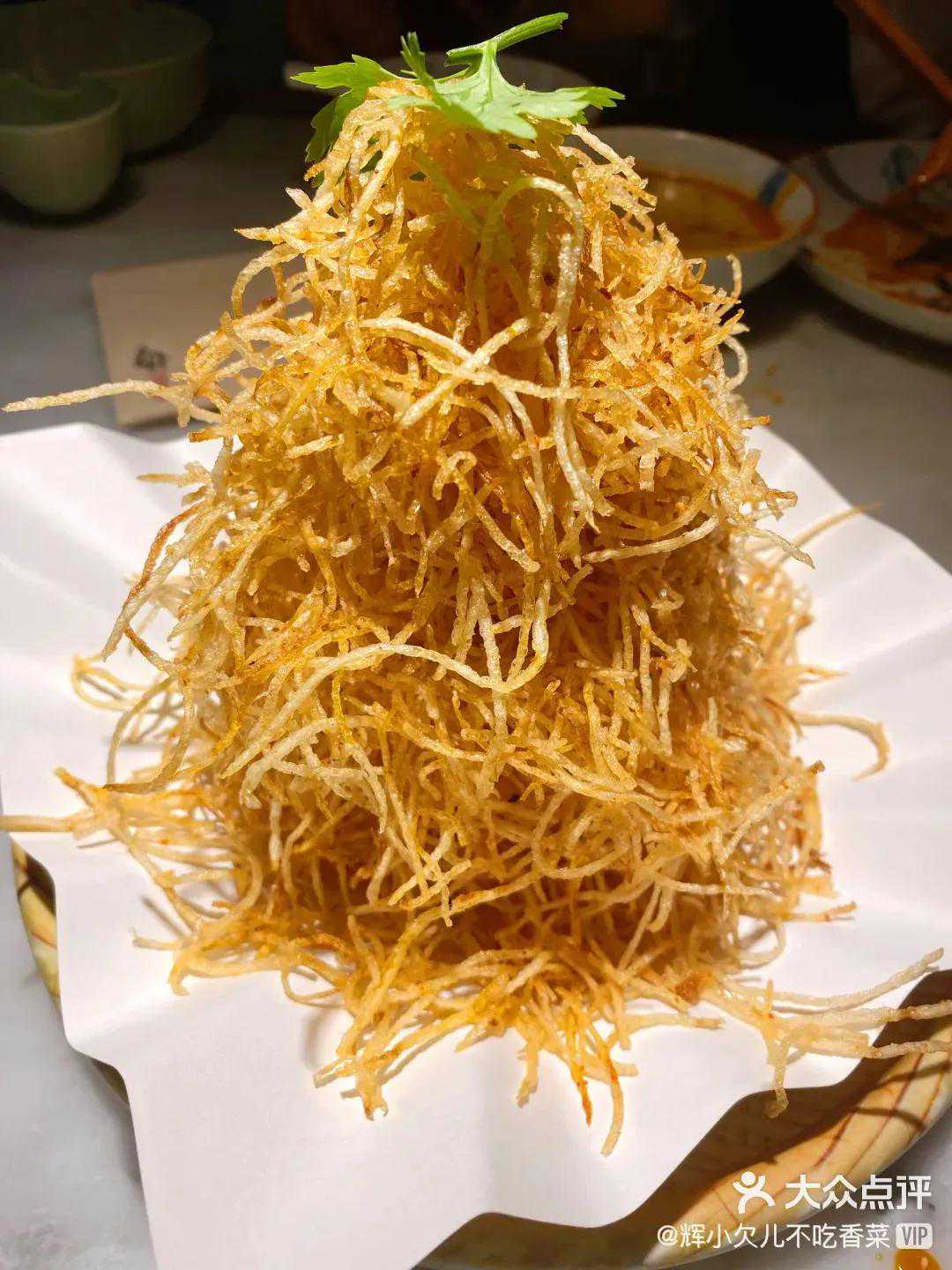 招牌菜品钵钵鸡,据说是在四川名菜“凉拌瓦块鸡”的基础上改良而来,用的是四川独有的“怪味”味型烹制,集“咸、甜、麻、辣、酸、鲜、香”于一体~香辣土豆丝,刚入口像小时候吃的那种辣条丝,嚼一口像薯片,但是又充满了炸薯条的香味,那种奇异的感觉只有吃过才懂~锦里奶酪是一道甜品,仙气十足,干冰效果满分,奶酪与酥脆口感的结合,上面还有爆爆珠,轻轻咬一口,就有爆汁的那种惊艳感~红糖糍粑,裹着黄豆粉和红糖汁的糍粑在灯光下散发着诱人的光泽,飘香的熟黄豆粉和地道老红糖口感很好,细腻香甜!