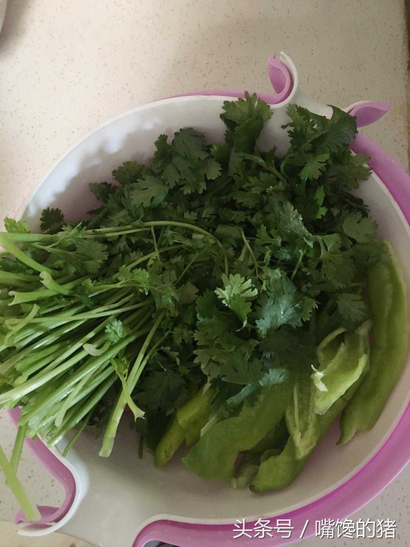 1.准备食材,香菜洗净,辣椒去籽掰成段备用。