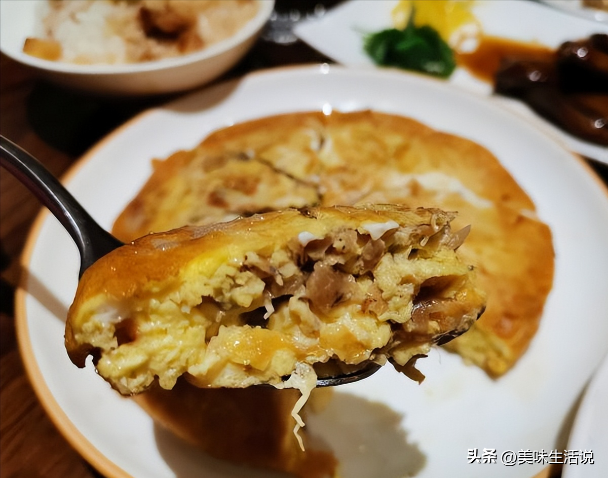鸡蛋里面裹着肉馅和萝卜丁,肉馅也不油腻,萝卜丁也很爽脆,中和鸡蛋过油的味道,鲜香滑嫩很不错。