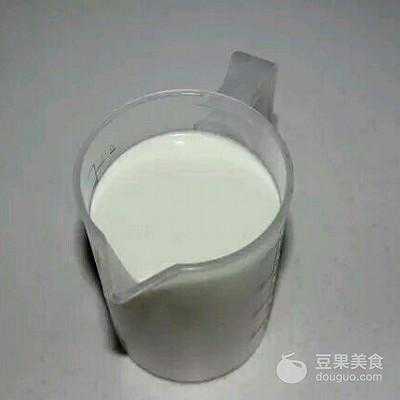 4、63克的淡奶油和62克的细砂糖一起煮开化糖