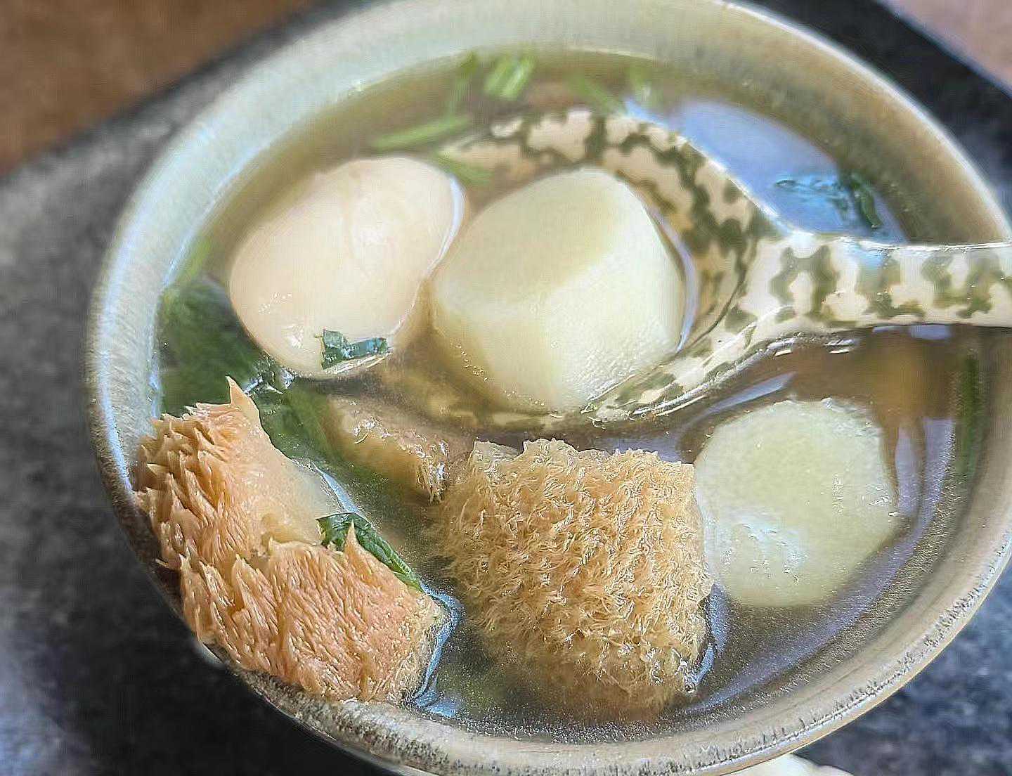 5、汤煲好后,加入适量的盐调味,即可出锅食用。猴头菇的鲜美与四神汤的醇厚相互交融,每一口都是满满的滋养。
