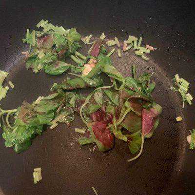 5、然后倒入青菜翻炒一下