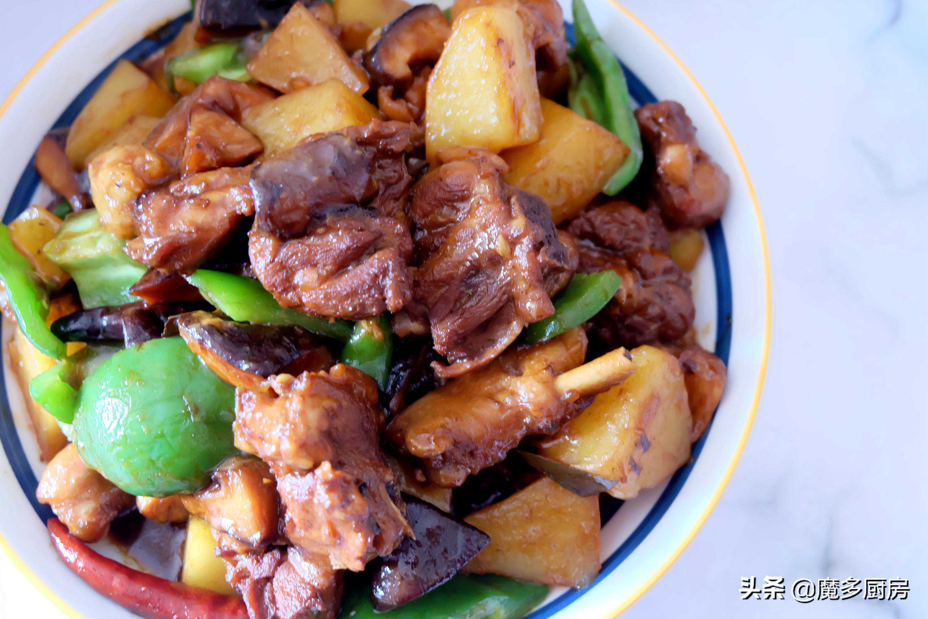 这道家常菜,鸭肉肉质鲜嫩,土豆软糯,香菇肉厚,青椒清脆,因为放了干红辣椒,还有微微辛辣之味,口感丰富,好吃又下饭,每次做这道菜,米饭都会多吃一两碗。
