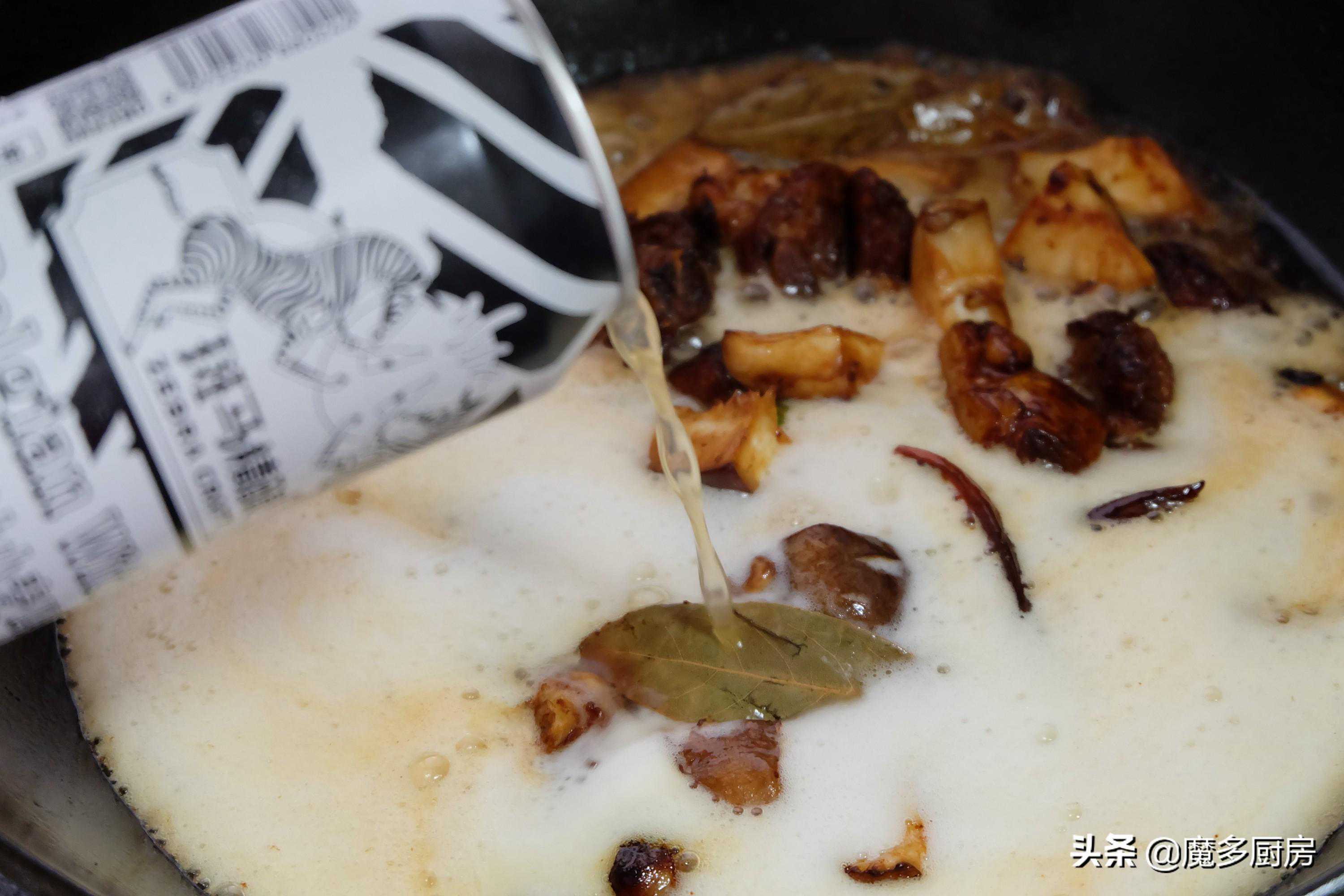 装盘上桌,饭菜做好,虽然用了一罐啤酒,但经过高温炖煮,啤酒的酒精气味已经消散,只剩下啤酒的清香味道。