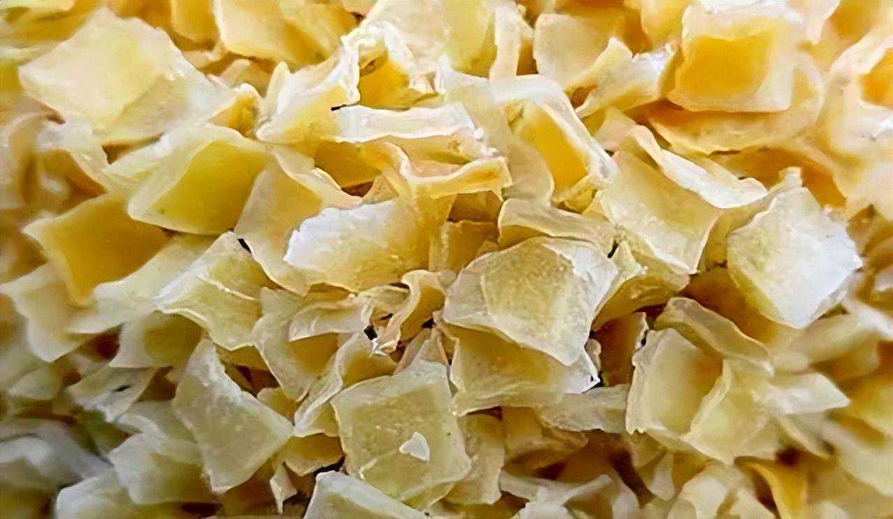 土豆干,是东北人最爱的干菜之一,将新鲜的土豆切片或者切条,放入开水中锅中煮至七成熟捞出来,平铺在竹席上放在晒干即可。