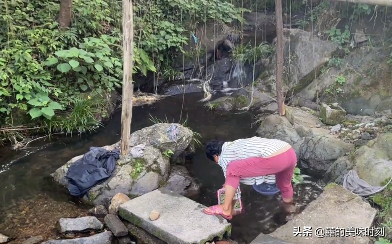 附近有个山泉水,非常清澈,当地老百姓直接在泉水里洗菜,真是看着就舒服,吃起来也更清甜,院子旁边有自己的田地,像青椒、葱这些都自给自足,连玉米茄子这些都有,个头不大,但特别新鲜。最吸引人的还是家里大妈自己养的鸡,根本不需要怎么照顾,直接满山跑,想要吃的时候还得靠体力去抓,每一只都肉质紧实鲜美,比市场里的鸡肉好吃太多,油花儿也更香醇。