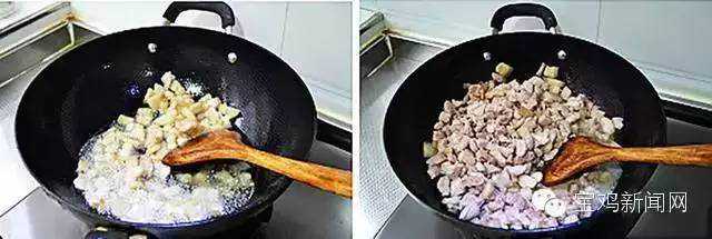 热锅凉油,大概就是一斤肉一两油的比例,倒入肥肉煸炒;煸炒到肥肉吐油倒入瘦肉翻炒,到水分大部分丧失
