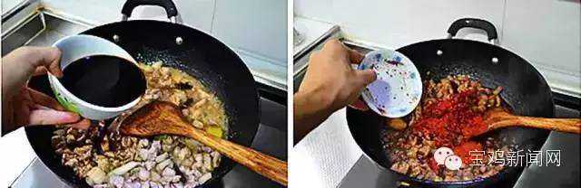 加入醋大量大概一小碗二斤肉大概小二两醋,总之量要大些,但是这也根据个人口味和后期汤的制作,因为做汤还要放醋;虽然酸是它的特点,但咱也别酸的吃不了了;中小火焖烧到水分基本丧失5到10分钟吧,撒入大量辣椒面关火炒均匀,肉臊子制作完成