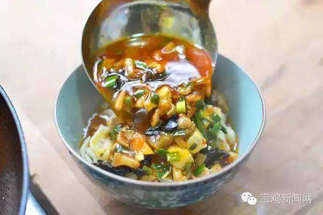 2、臊子汤的制作讲究:煎、稀、汪,这一步用陕西人的话讲就是“呛汤”为啥叫“呛”呢?其实就是先用油爆个香料再倒入“醋”等液体,这就叫“呛”这样出来的“醋香而不酸”,再解释一下煎、稀、汪——煎:用陕西话讲煎就是表示面和汤要“烫”要“够热”不能吃温的凉的一定要热食;稀:说的是面条要少汤要宽,而且吃面讲究:只吃面不喝汤,面条也是一口香。一筷子就吃完了,一般小伙子吃上几十碗面也是“碎碎的事情”(陕西话小小的事情);汪:说的是面汤油汪汪,过去人缺油水,所以吃油多喜欢上面飘着一层红油而且只吃面不喝汤,这里在家大家自己制作没必要那没多油,倒了可惜,喝了大夏天的,谁受得了。