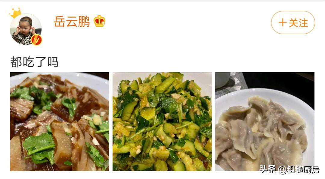 原本以为岳云鹏已经这么红了,生活一定会比较奢侈,但没想到他竟然还挺接地气。他吃饺子搭配的凉菜出镜率最高的就是拍黄瓜,有时还会多加个一盘凉拌皮冻,或者卤猪头肉,这是地道的河南家常味道,每每看到都让人觉得平实、满足。