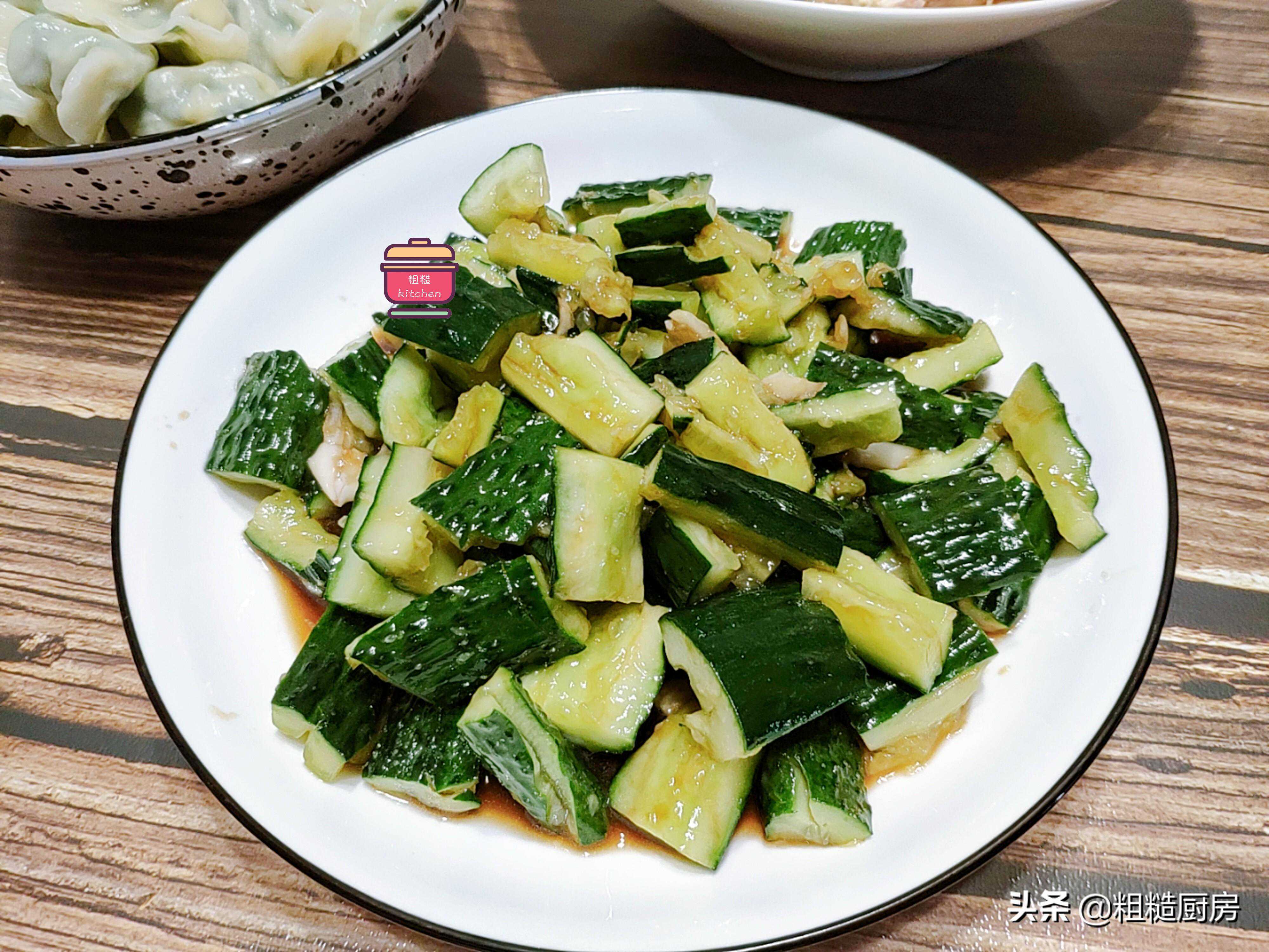 素凉菜我准备的是岳云鹏同款拍黄瓜,这道菜绝对是夏日的必备凉菜,喝粥、配饭、吃面条、吃饺子都可以来上这一盘,吃腻了就夹两块,酸酸地清爽开胃,特别适宜。