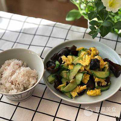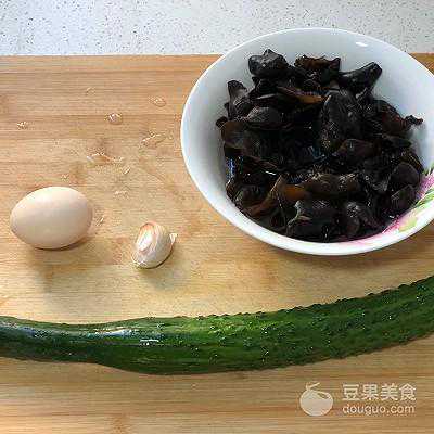 1、准备食材,提前泡发木耳,黄瓜洗净。