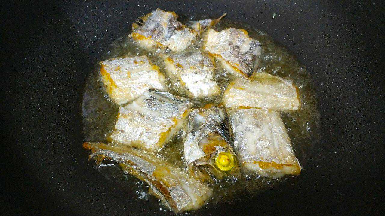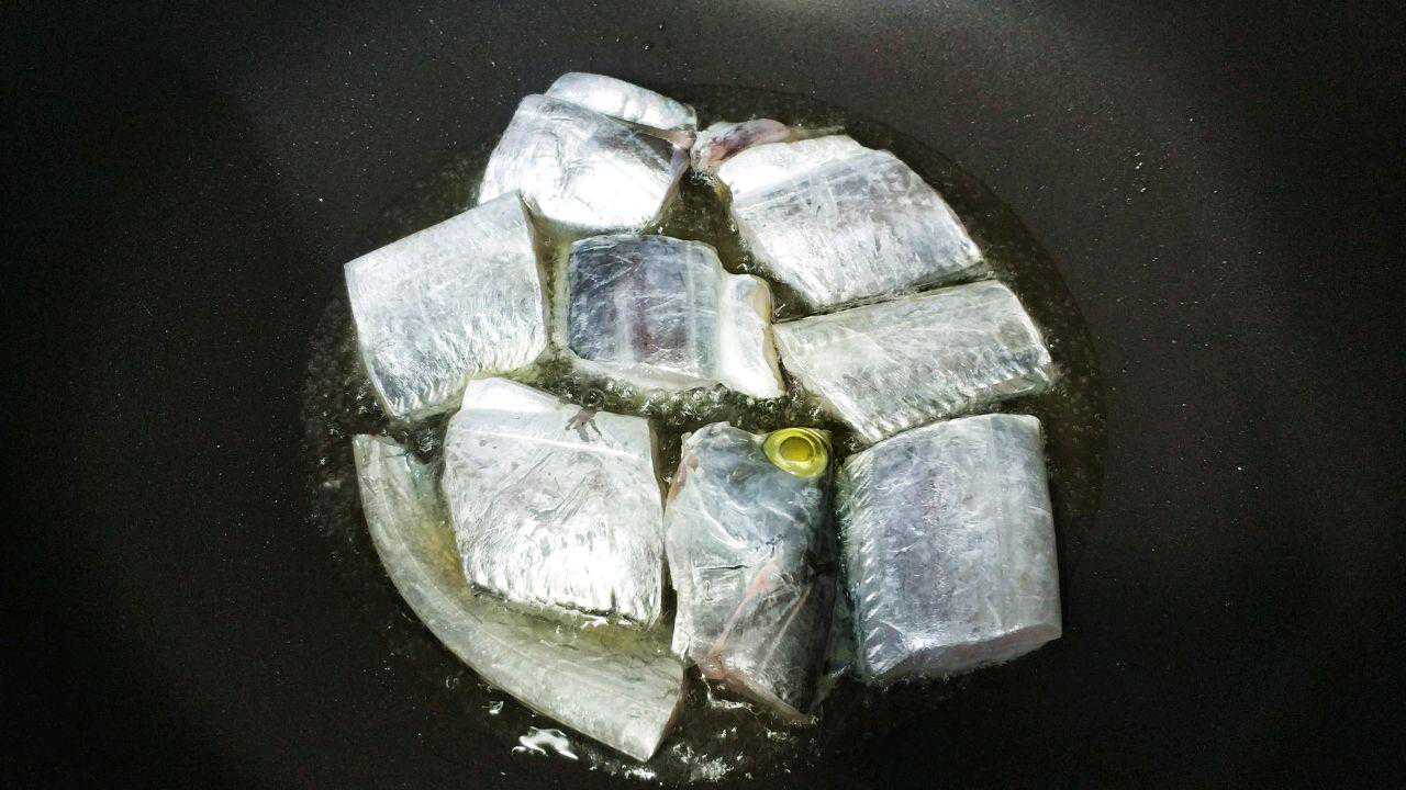 3、煎刀鱼之前首先要保证刀鱼表面干燥否则容易溅油灼伤人。而煎鱼的时候不要太频繁的翻动,尤其是没有裹外糊的刀鱼段,一定要确保一面充分熟透并且焦脆之后再翻面,过早过多的翻动鱼肉会使鱼皮受损,鱼身破碎。