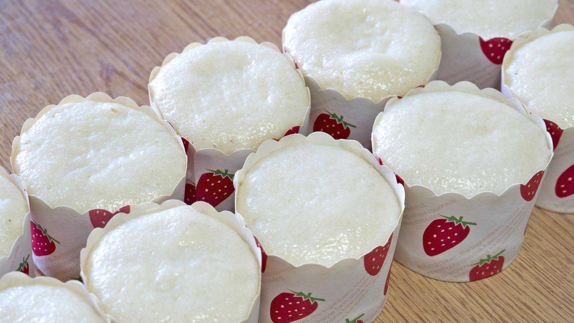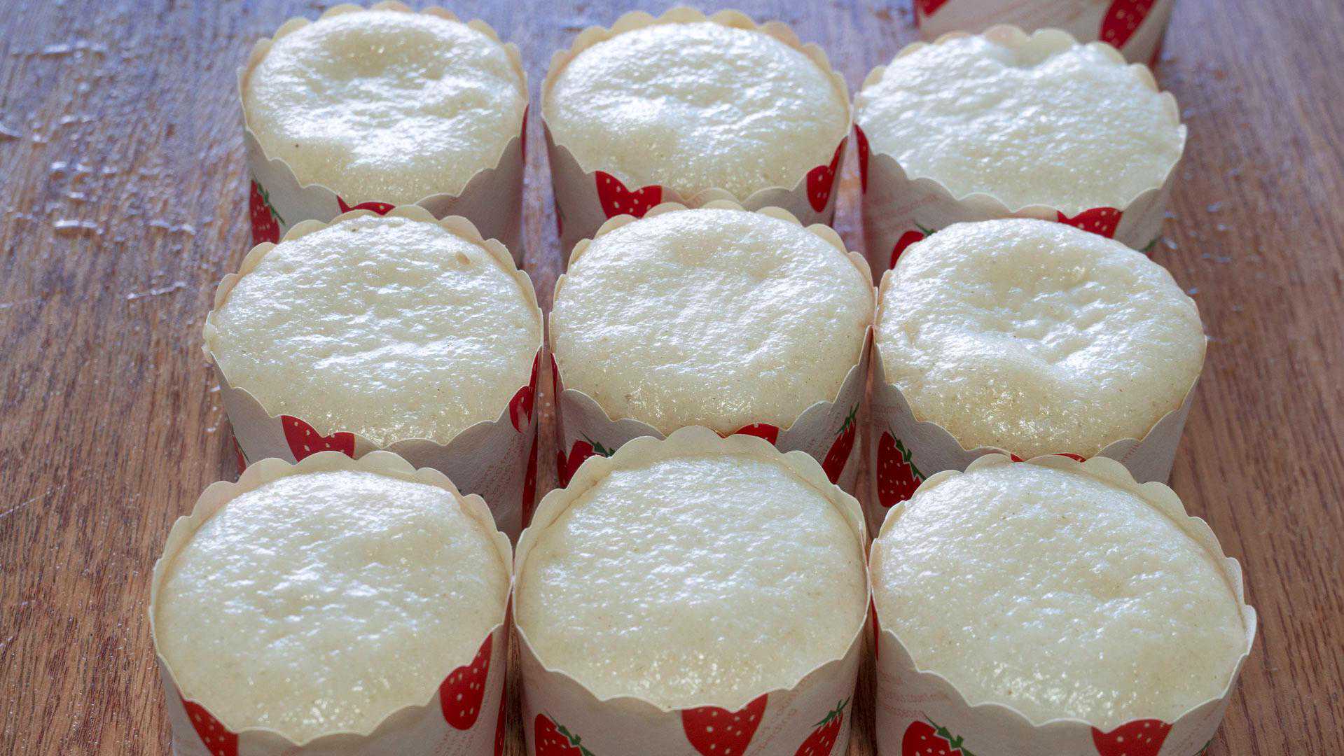 3、米浆千万不要在模具中倒满,有个7到8分满就足够了,要给米发糕留出膨胀的空间;