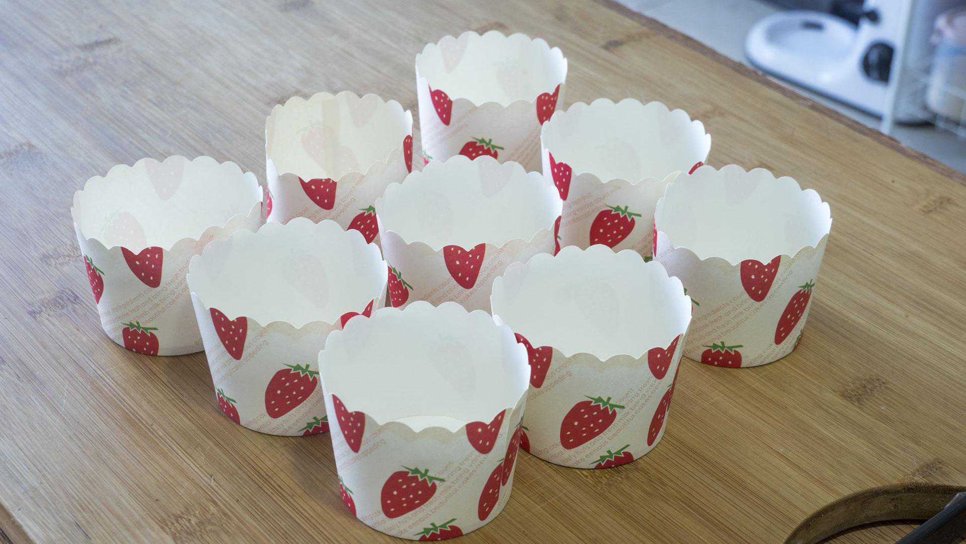 7、接着准备模具,我用的是小纸杯,家里没有的话可以直接用小碗,接着倒入面糊八分满,今儿做得比较多,还剩的一些我直接倒入长方形的模具里了;