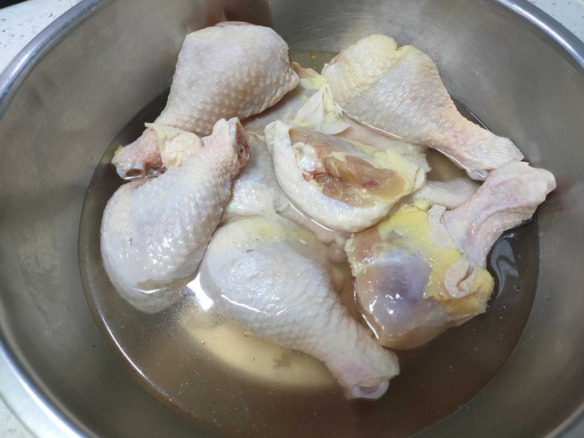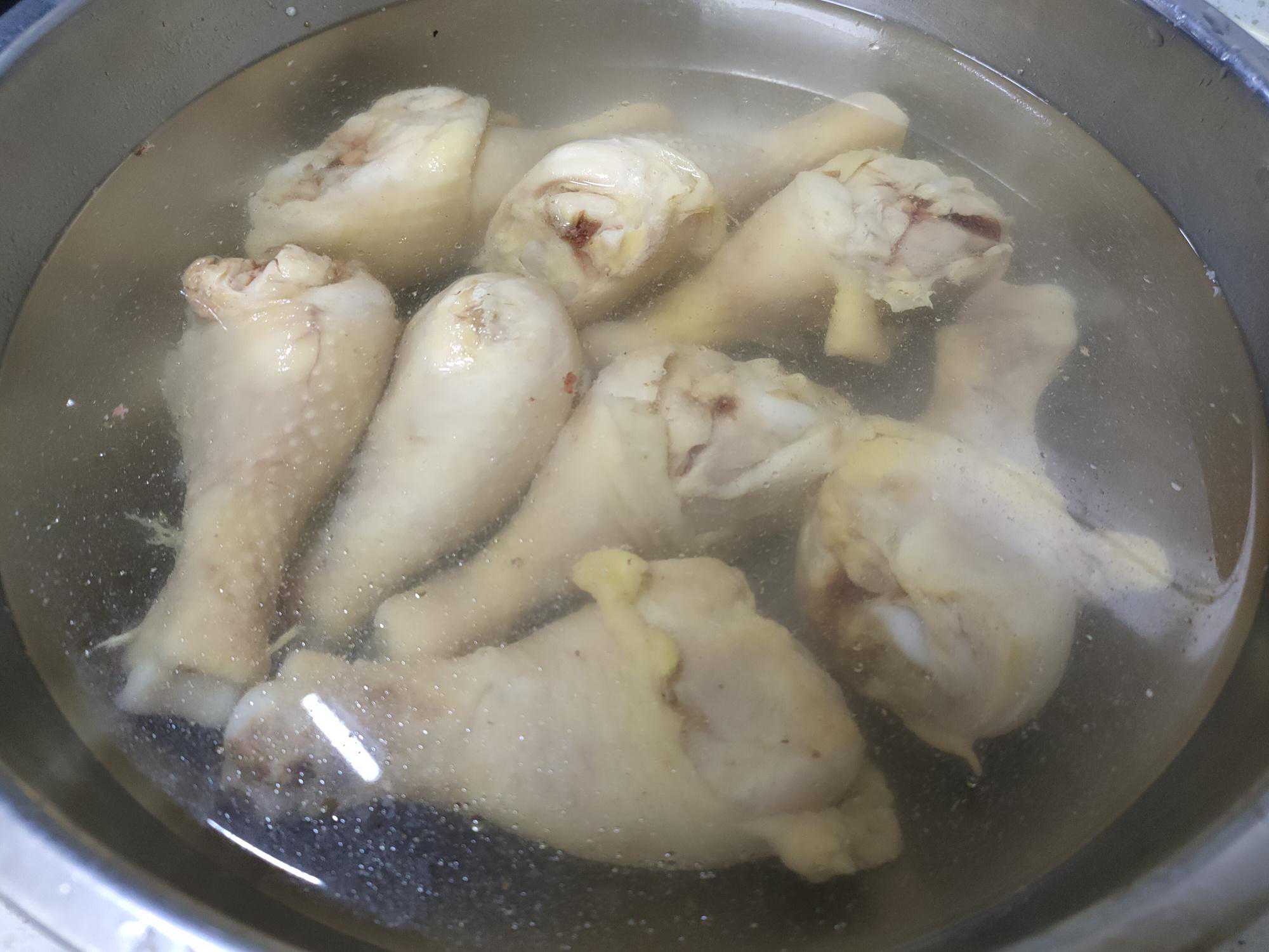 1、鸡腿焯水后要及时过凉水,让鸡肉表皮变紧实。