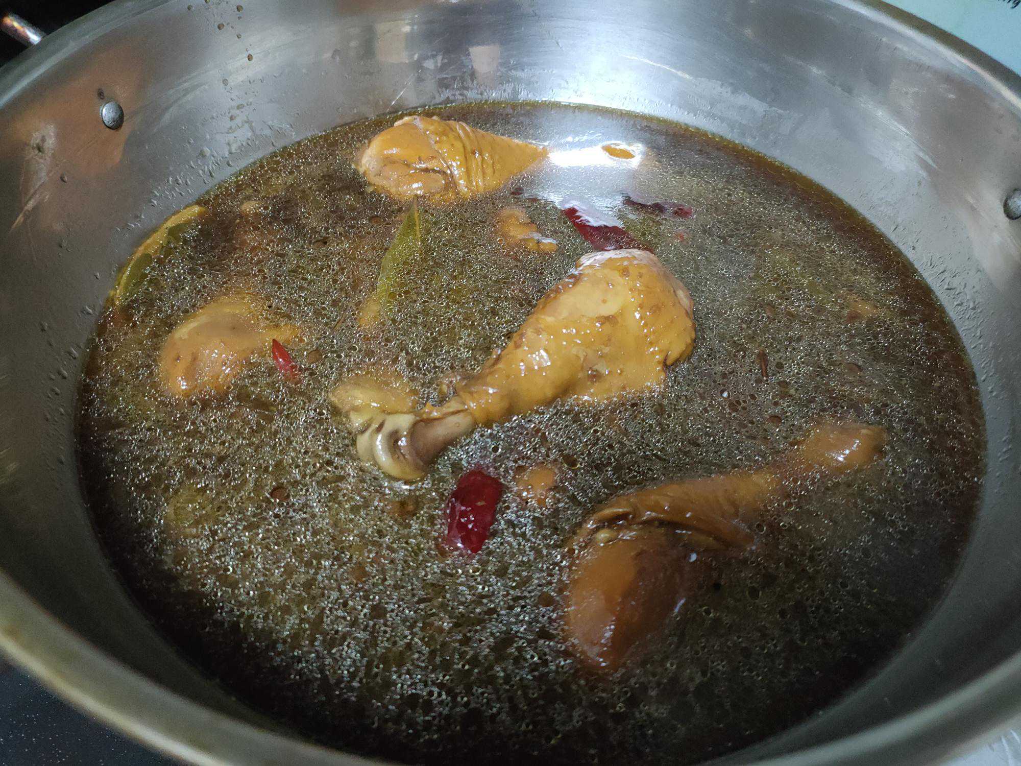 3、卤鸡腿的过程中不要经常搅动,以防鸡腿破皮。