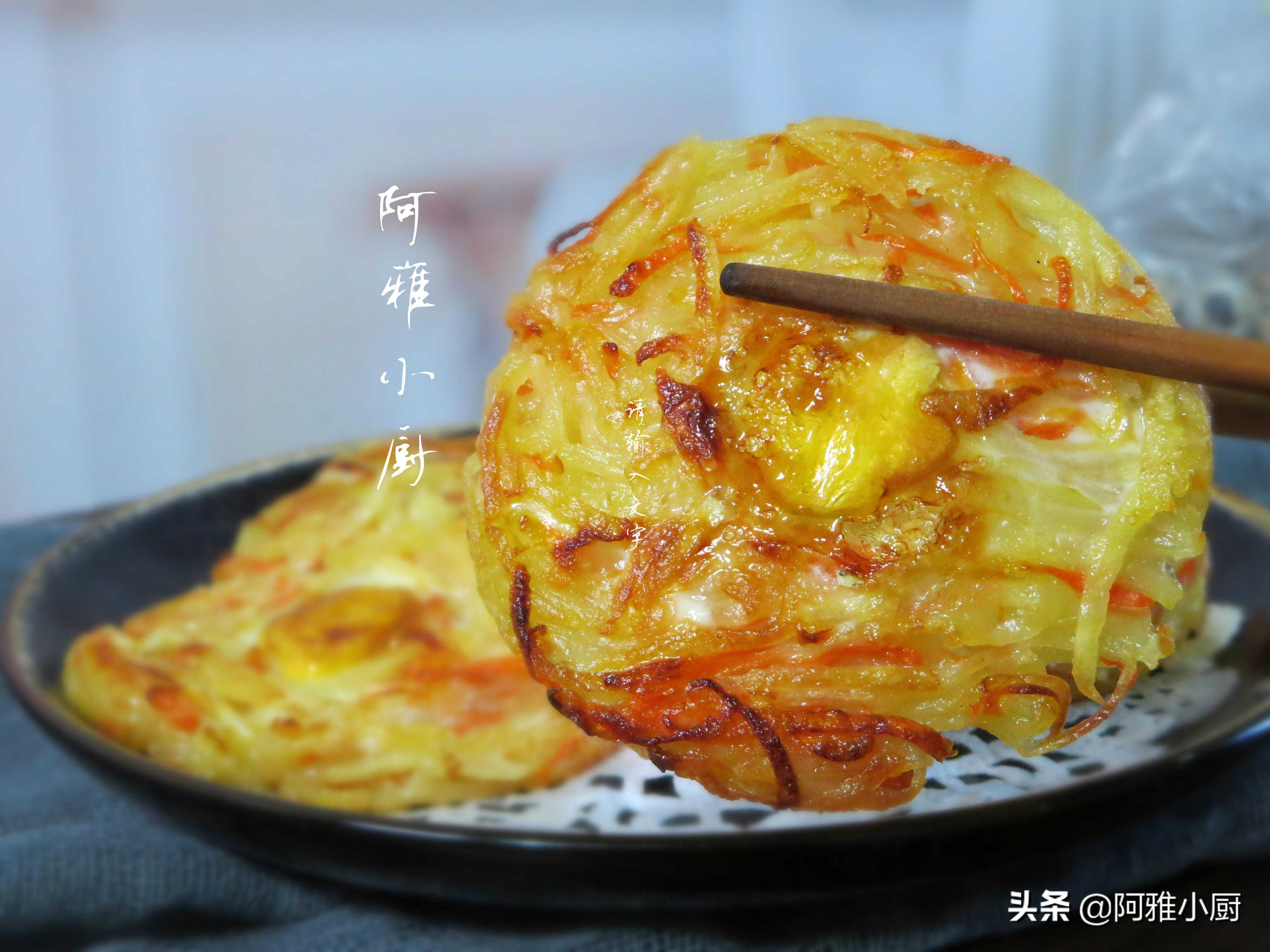 【干煸土豆丝饼】土豆一颗,胡萝卜半颗,鹌鹑蛋,盐,淀粉