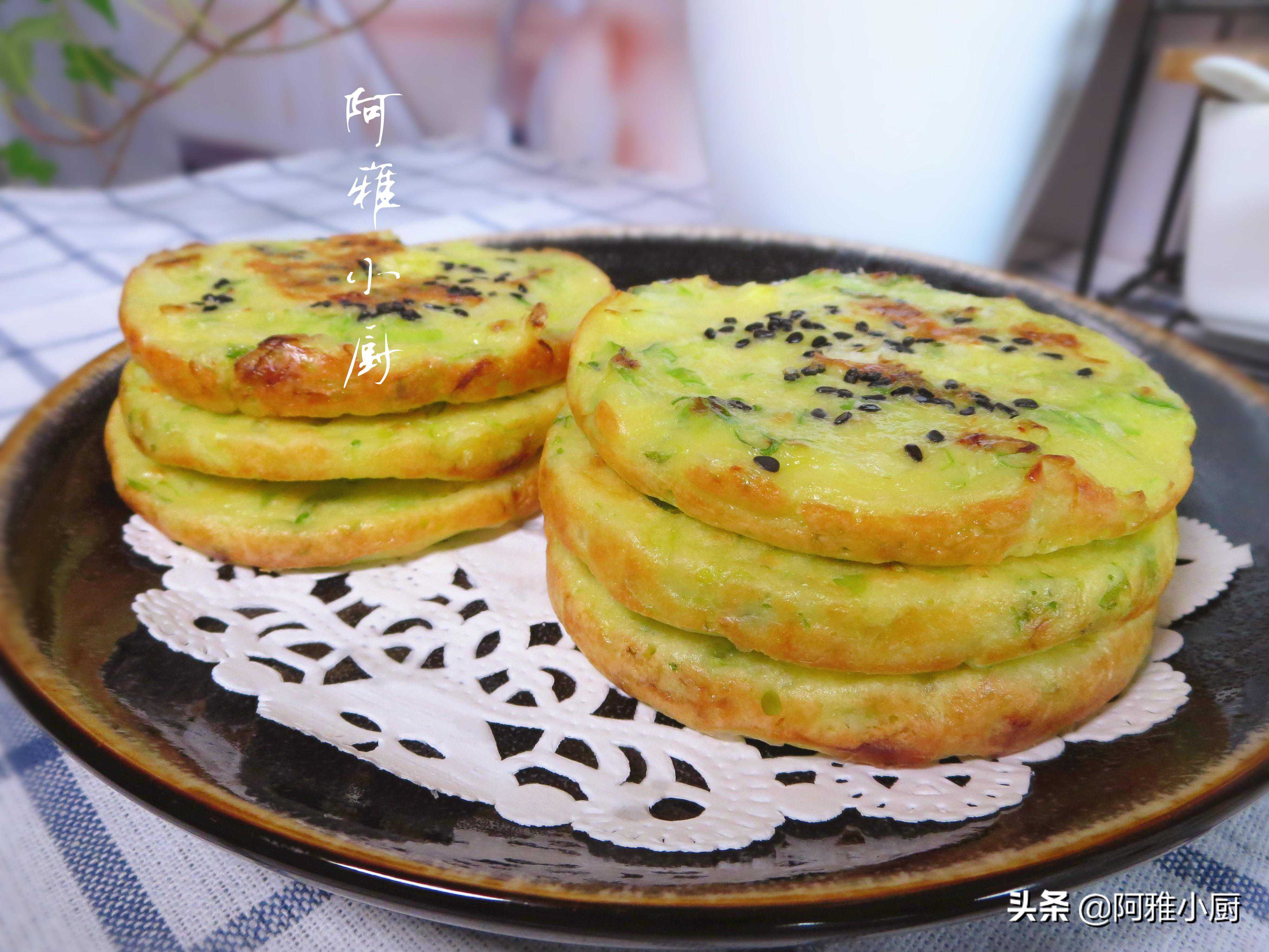 【玉米面葱花饼】玉米面粉150g,普通面粉150g,小葱,黑芝麻,盐,酵母