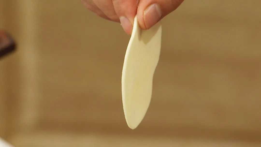 步骤1:单层饺子皮入锅干煎鼓泡呈空心饼;