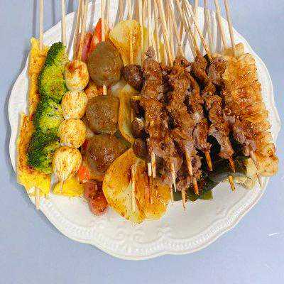2、处理好的食材用竹签串好
