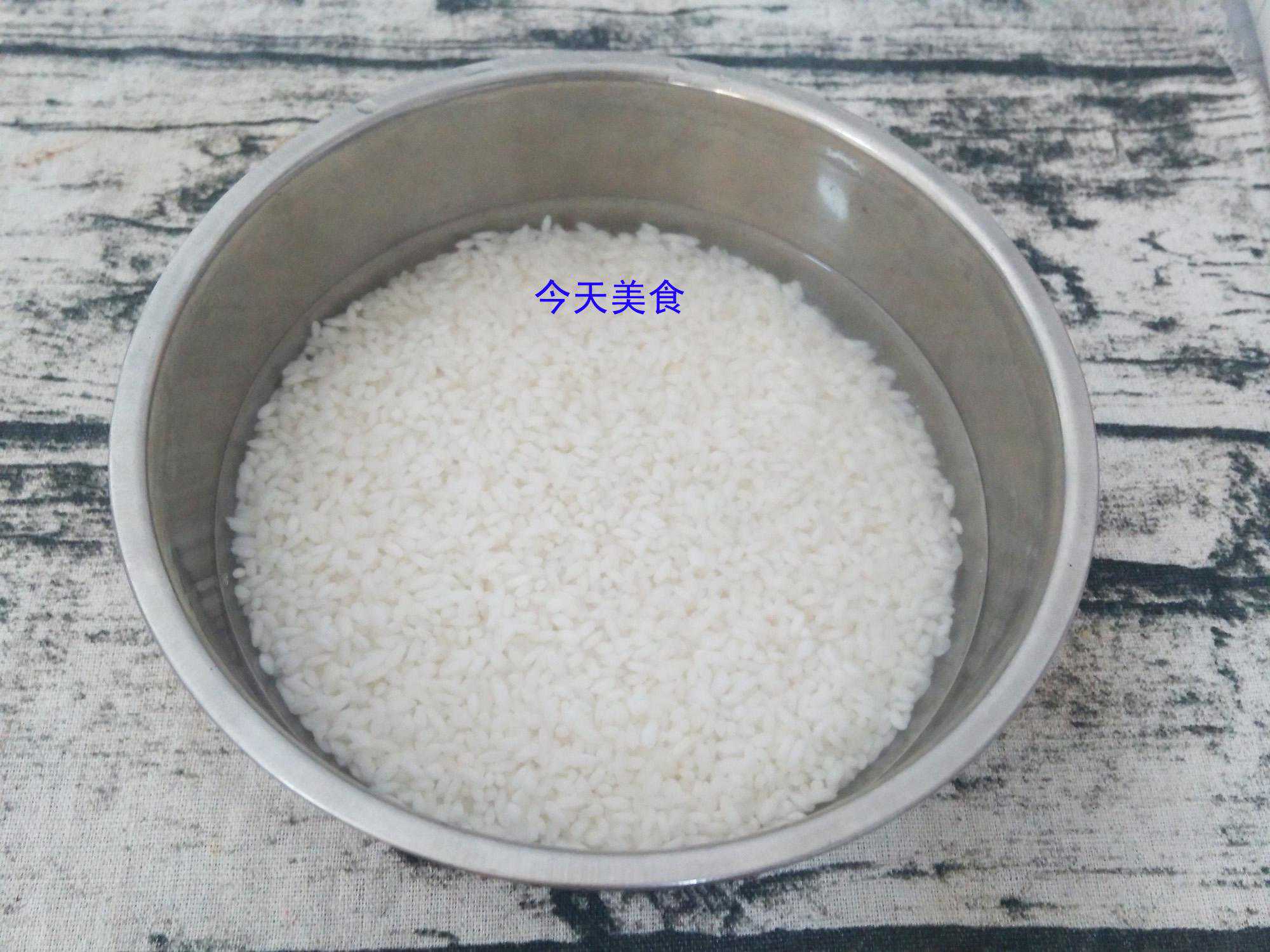 1、首先将大米淘洗几遍,清洗干净,放入适量清水,浸泡4-5小时左右,泡至大米颜色发白,且颗粒膨胀。