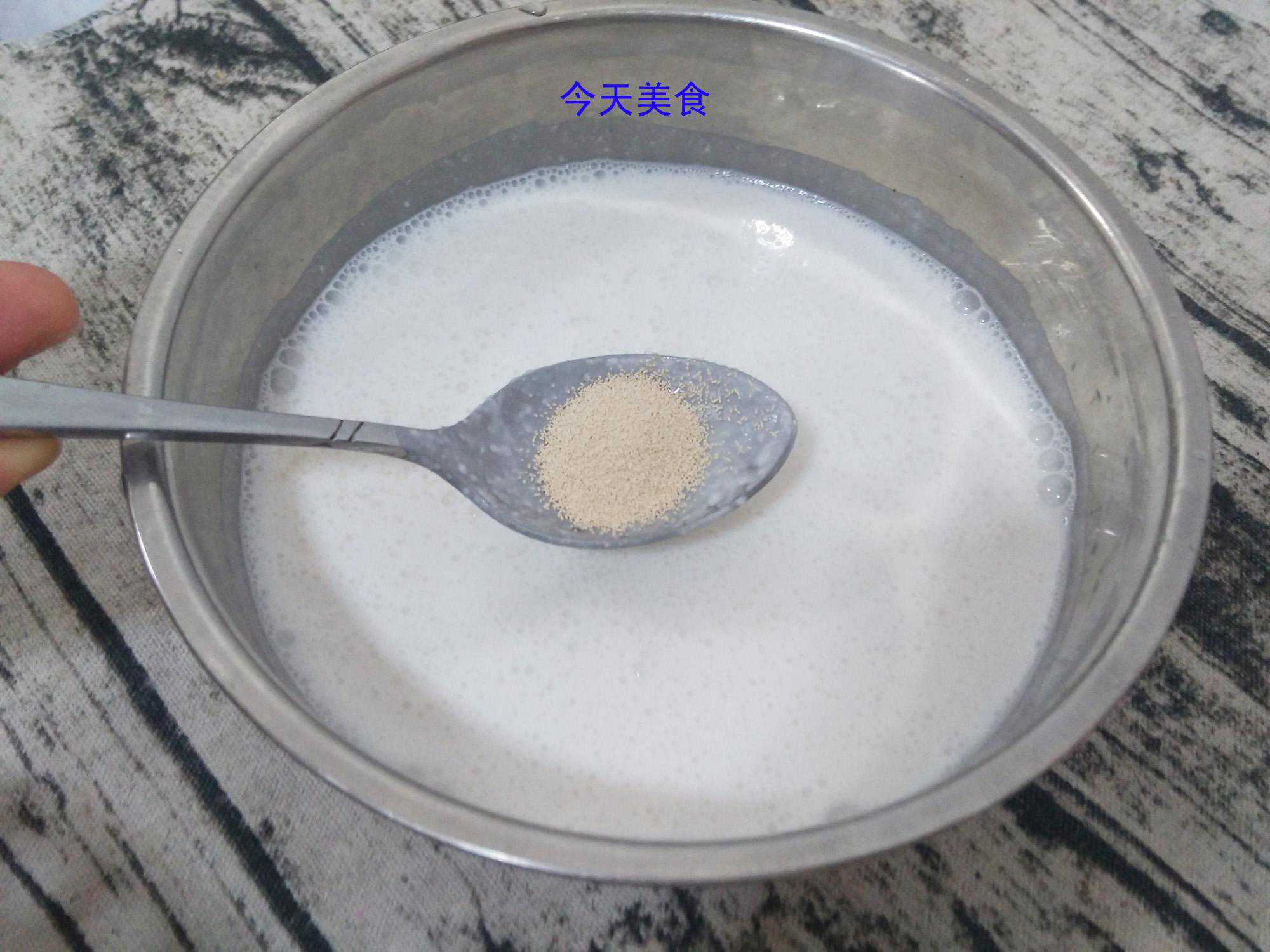 【食材】大米200克,淀粉1勺,白糖2勺,酵母少许,清水适量,植物油少许