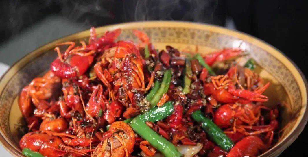2.锅留色拉油200毫升,烧至六成热时,下入姜片、蒜、干辣椒和红花椒炝香,再把香辣底料放进去翻炒,接着加入小龙虾翻炒均匀,掺入清水300毫升并放入剩余的调料,等到把汤汁收至浓稠时,最后勾薄芡并淋入香油和花椒油,炒匀了即可出锅。
